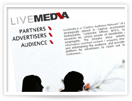 LiveMedia is a “Captive Audience Network” of LCD Screens, strategically placed in Captive environments such as Restaurants, Corporate Offices, BPO's, Gyms, Salons, Hospitals etc. where people of identifiable demographics congregate. |